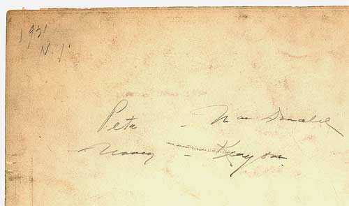 On the back of this panel is the notation "1931 N.Y." and the names of several of Frank's friends, including Pete MacDonald, Byron MacDonald's brother, who was mentioned in Byron's 1975 letter to Frank Foster.